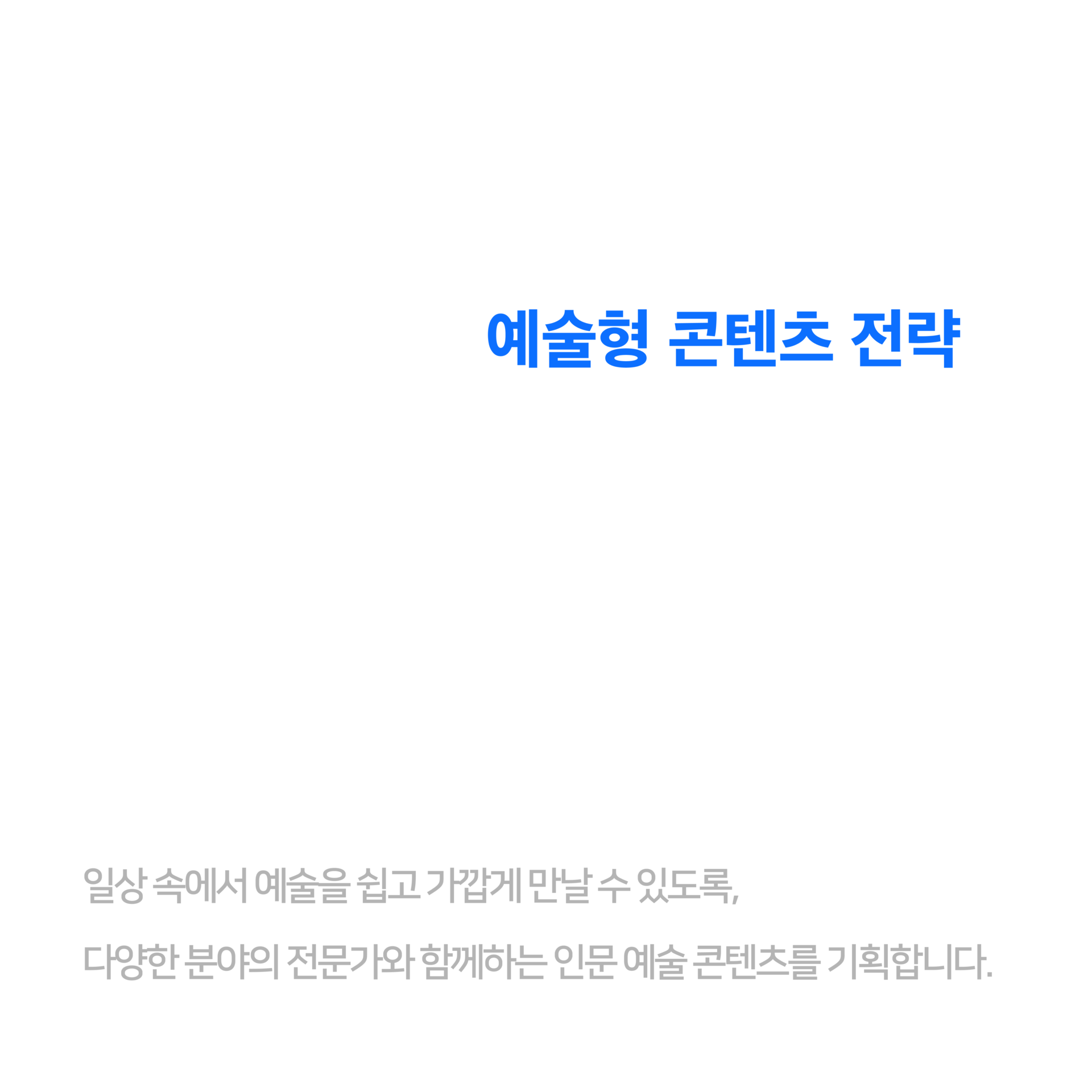 다양한 분야의 전문가와 함께하는 인문 예술 콘텐츠를 기획합니다.