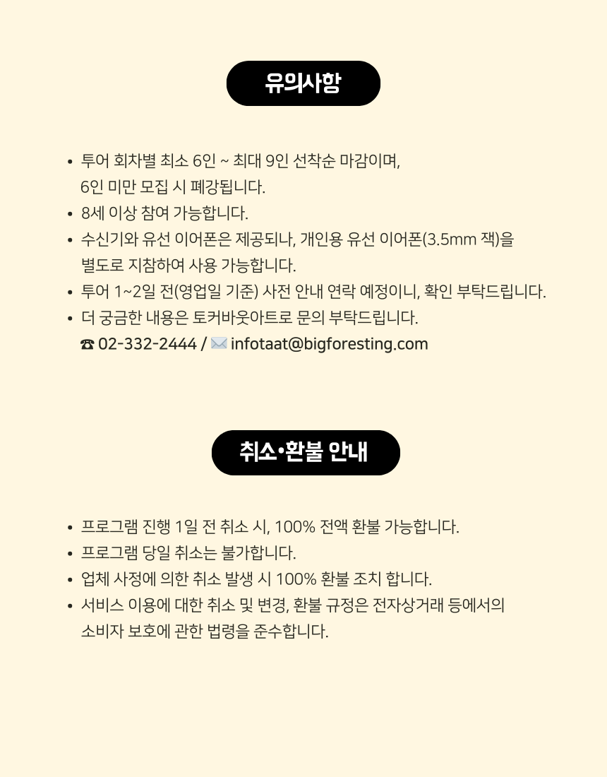 ※ 단체관람 개별문의 infotaat@bigforesting.com / 02-332-2444 (☎ 평일 9:00~18:00)