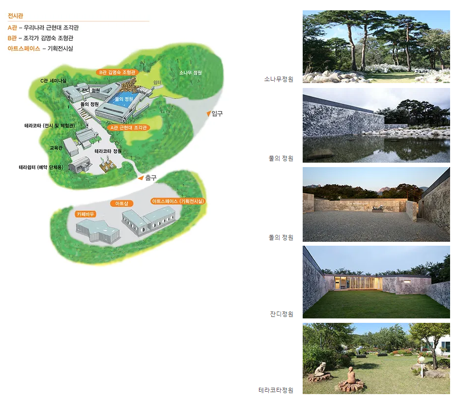 근현대조각관에서는 조각계의 대가 김영중을 비롯해, 근대조소를 일군 1세대 김경승, 국전 대통령상 수상작가 박병욱, 여류조각가로 석주미술상을 수상한 김혜원, 일상적인 오브제를 통해 서로 다른 의미를 발견하는 조성묵, 현대 조각의 산증인 이운식, 프랑스 파리에서 오랫동안 활동하며 한-불 문화교류의 큰 공로로 프랑스정부로부터 '예술문학기사' 훈장을 받기도한 문신 등 우리나라 근현대 조각계의 대표작가의 대표작 40여점을 근현대조각관에서 감상할 수 있다.