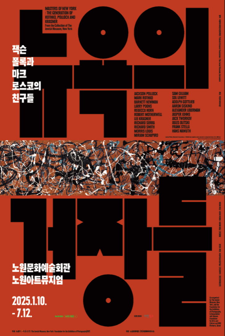 이번 전시 ≪뉴욕의 거장들-잭슨 폴록과 마크 로스코의 친구들≫은 잭슨폴록 외 마크 로스코, 리 크레이스너, 재스퍼 존스, 바넷 뉴먼, 로버트 마더웰, 솔 르윗 등 동시대에 활동했던 거장들의 작품을 선보입니다. 2차 세계대전 이후, 파괴된 세상과 사람들의 상처를 예술로 치유하고자 했던 예술가들의 명작들을 이번 전시에서 만나 보세요!