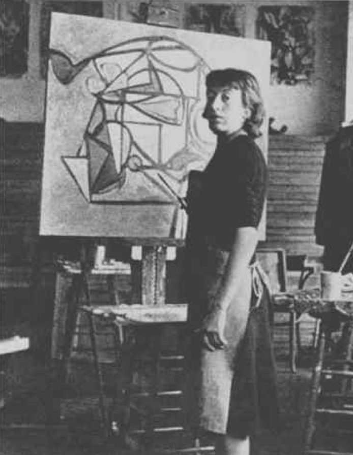 뉴욕 한스 호프만 스튜디오에서 이젤 앞에 서 있는 리 크레이스너, c. 1930